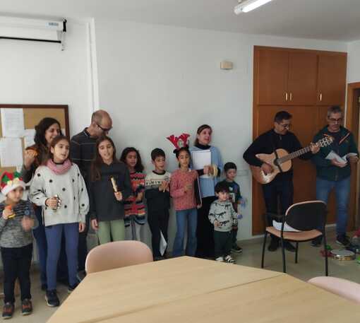 28 de diciembre, grupo de familias de la Parroquia (papás, niños, abuelos…), acompañados de abundante instrumentación, a lo que se añadió el recitado de poesías navideñas por parte de los pequeños.