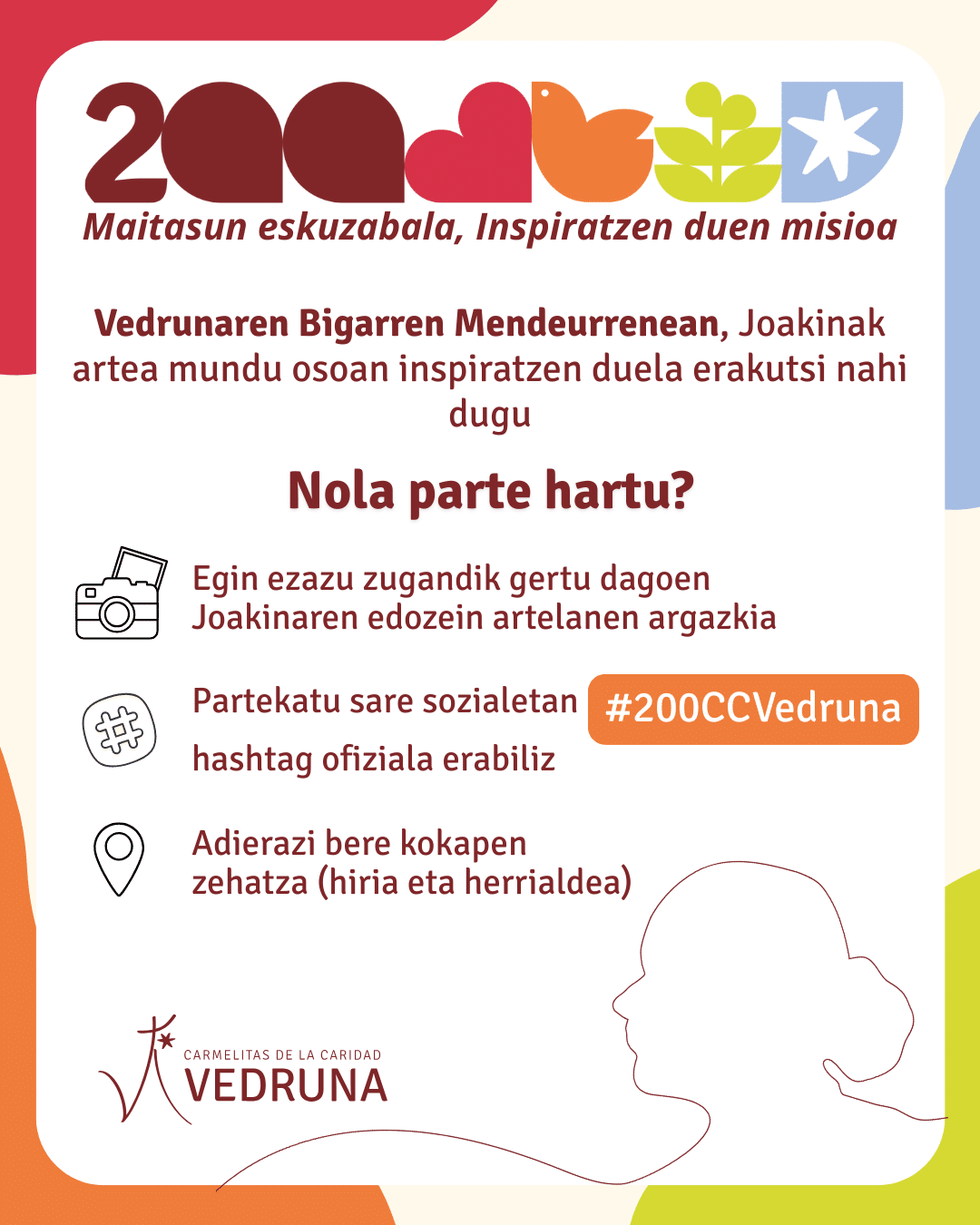 A las puertas ya del Bicentenario, desde este 17 de noviembre está en marcha una campaña en Redes Sociales con el objetivo de compartir fotografías y selfies junto a pinturas, esculturas, estampas o cualquier otra representación de santa Joaquina, con el hashtag #200CCVedruna.