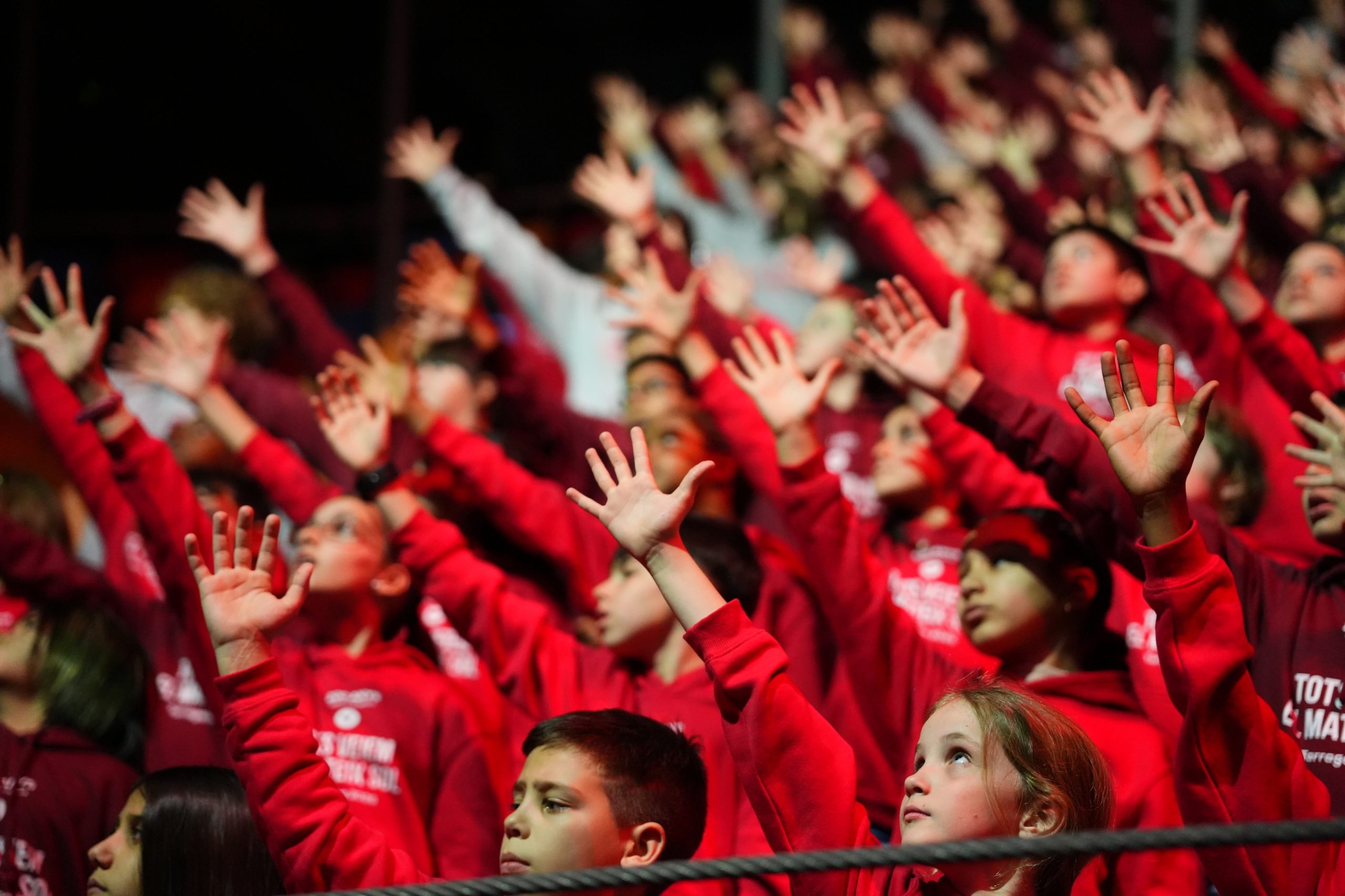 Diversos testimonios de educadores y alumnos Vedruna se han entrelazado en la plaza de la Tàrraco Arena para confirmar la realidad de acogida y estima que se vive en las escuelas. “Quiero dar las gracias a Laila, que me ayudó mucho a aprender a escribir, a leer y a hablar. Ahora ya no estoy con ella, pero la echo mucho de menos”, decía Max a su antigua maestra. Max, un niño que llegó a la escuela Vedruna a mediados de I3: “Una nueva escuela, una nueva familia y una nueva lengua hicieron que no nos diéramos cuenta hasta finales de I5 de que Max no oía. Recuerdo su primera exposición oral sin audífonos; fue un triunfo compartido”, relató Laila.