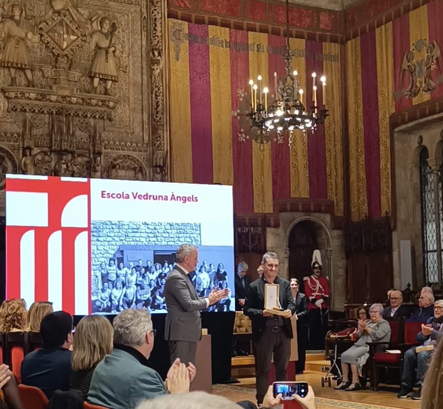El Ayuntamiento de Barcelona ha entregado a la escuela Vedruna Angels una de las Medallas de Oro de este año, reconocimiento que tiene por objeto “distinguir a aquellas personas físicas, personas jurídicas o entidades, nacionales o extranjeras, que hayan destacado en la defensa de la ciudad, así como en la defensa de las virtudes y valores cívicos”.